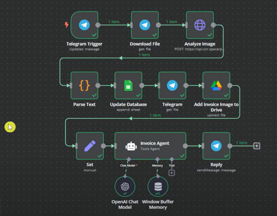 Handling invoices manually is both time‑consuming and prone to errors. To solve this challenge, this guide walks you through building an AI‑powered invoice processing agent using n8n, a no‑code automation tool. Specifically, it shows you how to automate image‑to‑text extraction, data storage, document archiving, and AI‑driven responses — all while integrating seamlessly with Telegram for easy file submission.